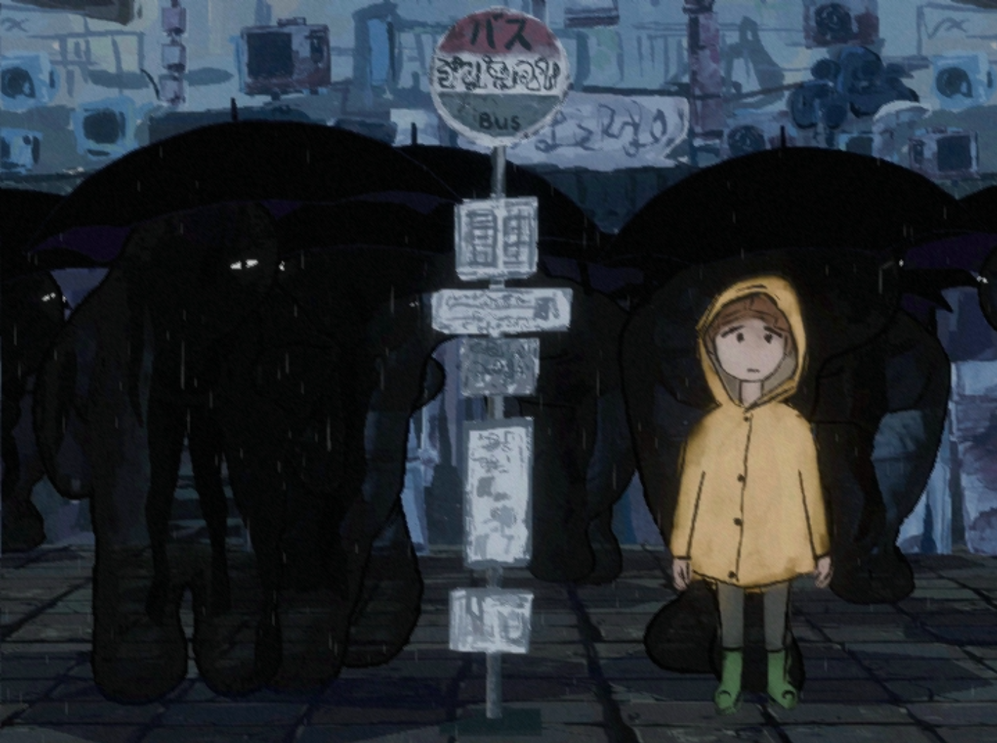 この物語の登場人物たちはいつも傘をさしてます。雨が降っている時でも、降っていない時でも、傘の下で隠れんぼしてます。なぜでしょう?
