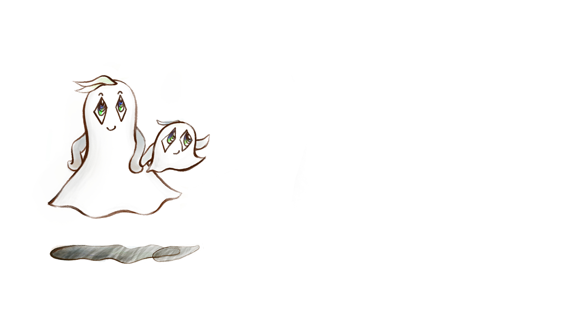 左にいるオバケカーさんとボーやが右に移動して、また左に戻ってくるループアニメ。